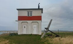 Wir holten unseren Schlüssel pünktich um 15 Uhr ab und fuhren zu unserem Haus. Es lag genau neben einem Betonturm, der zwar nicht besonders schön war, dafür aber eine lange Geschichte erzählen kann: Der Kathøj Betontårn war die erste Windkraftanlage der Welt. Während bis 1942 ein Dieselmotor mit Generator die einzige Stromquelle auf der Insel war, wurde seinerzeit die Stromversorgung durch ein zweiblättriges Windrad ergänzt. In den Jahren 1951-52 wurde die Gleichstromanlage durch einen Wechselstromgenerator, der über ein dreiblättriges Windrad angetrieben wurde ausgetauscht. Als Erinnerung an die damalige Pionierleistung steht der Turm noch heute auf der Insel.