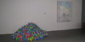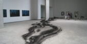 Die schwarzen „Schleifspuren“ waren verkohlte Knochen, die einfach auf dem Boden verrieben waren. Diese Ausstellung war mit Bildern und Pflanzenteilen in Glaszylindern kombiniert. Dort war schon der Eingang eine Besonderheit: Die Wand aus Beton stellte einen riesigen Riss in der Mauer dar, durch den man in die Halle eintreten konnte.