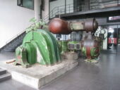 Die meisten Gebäude erinnern an Produktionshallen. Außerdem gibt es einen alten Güterbahnhof mit einer Dampflok. Davor kann man seine Füße an einer coolen Erfindung abkühlen. Direkt daneben zeigt ein riesiges Poster, wie das Geländer früher einmal aussah. Deutlich ist darauf das große Heizkraftwerk zu sehen, welches auch heute noch wie ein riesiger Lost Place in der Mitte des Künstlerviertels in den Himmel ragt. Viele der längst nicht mehr zu gebrauchenden Industrieanlagen werden heute in Kunstobjekte integriert: