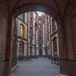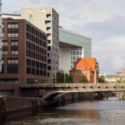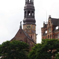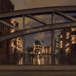 Unser Treffpunkt war das Chilehaus. Von dort aus bietet das Deichtorcenter gleich das erste interessante Motiv. Von da aus ist auch nicht weit zum Wasserschloss. Dort lohnt sich auch eine Aufnahme bei Dunkelheit – die Gebäude sind in den Abendstunden beleuchtet. Wir gingen dann weiter zum Fleetschlösschen und von dort aus über den Dar-es-Salaam Platz zum Maritimen Museum. Es lohnt sich ein Blick gen Osten den Brooktorhafen hinunter Richtung Spiegel online zu werfen. Das historische Gebäude bildet einen schönen Kontrast zu den modernen Bauten drum herum.