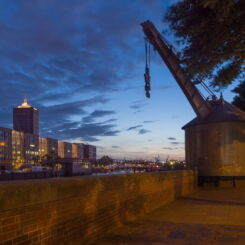 Vom Chilehaus gings vorbei am Wasserschloss zum Maritimen Museum mit der Störtebeker Statue. Von da aus weiter zu den Magellan Terrassen und zur Elbphilharmonie. Dort bestaunten wir den Sonnenuntergang und nahmen uns etwas Zeit für ein paar Langzeitbelichtungen an der Kehrwiederspitze. Zurück nahmen wir den Weg nördlich des Zollkanals mit der Flussschifferkirche und dem alten Kran, vorbei am Zollmuseum zum Ausgangspunkt, an dem wir noch ein paar Fotos der beleuchteten Speicher machten.