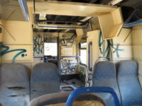 Wie ich jetzt gerade sehe, waren wir einige der letzten Geocacher, die hier noch den GHOST TRAIN bestaunen und untersuchen durften. Es handelte sich um einen Triebwagenzug, der hier auf der Trasse fahren sollte. Die Bahnstrecke wurde aber abgerissen und zu einem Wanderweg umgebaut. So stand der Zug hier viele Jahre und wurde nie in Betrieb genommen. In den Resten des Zuges suchten wir den Geocache. Im Gegensatz zum völlig zerstörten Zug gibt es ein paar Meter weiter noch das wunderschön restaurierte Bahnhofsgebäude des Ortes.