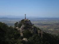Nun war es an der Zeit etwas herunter zu fahren – obwohl es eigentlich nach oben ging. Für den Tagesausklang hatten wir uns das Kloster Santuario de San Salvador ausgesucht. Dort wollten wir die Aussicht am Christkönigmonument genießen und die Geocaches am Puig de Sant Salvador suchen. Ein sehr interessanter und absolut empfehlenswerter Cache ist dabei Don Alfonso – ein Multi der unten am Berg startet, die Fahrt nach oben begleitet und vor Ort alle Sehenswürdigkeiten ansteuert. Dabei hatten wir unsere Probleme mit der Rosette, die uns viel Spaß und Interpretationen bescherte. Wer sich hier etwas Zeit mitbringt, kann vom Parkplatz aus die Paraglider beim Starten beobachten und natürlich die Aussicht genießen.