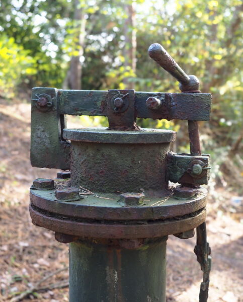 Wir starteten unsere Erkundung bei den zwei Doppeltanks. Beide sind begehbar: Einer von oben über eine ca. 12m lange Stahlleiter. Der andere Tank ist oben verschlossen, doch ein Wartungszugang an der Seite steht offen.