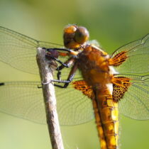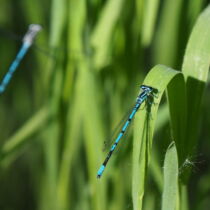 Diesmal kreuzte eine blaue Prachtlibelle meinen Weg an der bekannten Stelle und erregte meine Aufmerksamkeit. Beim genaueren Hinsehen stellte ich fest, das hinter den Brennnesseln viele verschiedene Libellen unterwegs waren. Ich machte das Equipment startklar und legte mich auf die Lauer. Trotz 400mm Brennweite war es gar nicht so einfach, nah genug an die unberechenbaren Flugakrobaten ranzukommen.