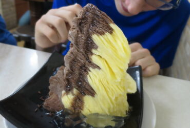(oben links): Optisch der Brüller: Wassereis in diversen Farben und Geschmacksrichtungen meist mit Gelee und Früchten, geschmacklich eher langweilig