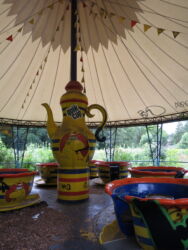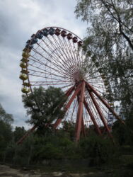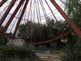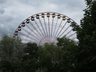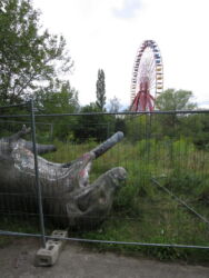 Wer in Berlin eine Spreefahrt von Charlottenburg bis nach Alt-Treptow macht, braucht nur noch durch den Treptow Park, um zum alten Spreepark Plänterwald zu kommen. Hier kann man noch heute die letzten Fahrgeschäfte des Freizeitparks bestaunen, der bis 2002 geöffnet war. Doch die letzten Tage sind angebrochen… Das Gelände wird bereits von Osten her abgerissen. Aber einige Attraktionen sind noch gut erhalten: Die Achterbahn, das Kaffeekannen-Karussell, die Wildwasserbahn und das Riesenrad. Das Wahrzeichen des Parks ist schon von weitem zu sehen. Und das Verrückte daran – es dreht sich die meiste Zeit durch den Wind. Ist man nah genug dran, kann man die alten Lager ächzen hören. Es hört sich ein bisschen wie Duddelsackmusik an.